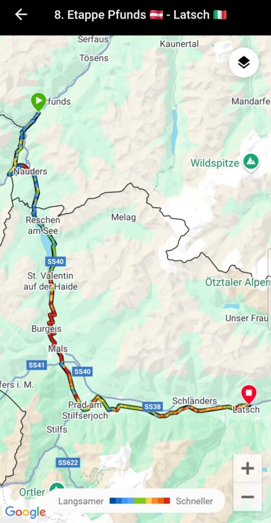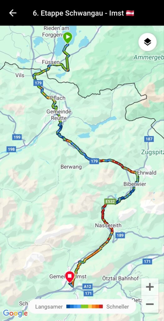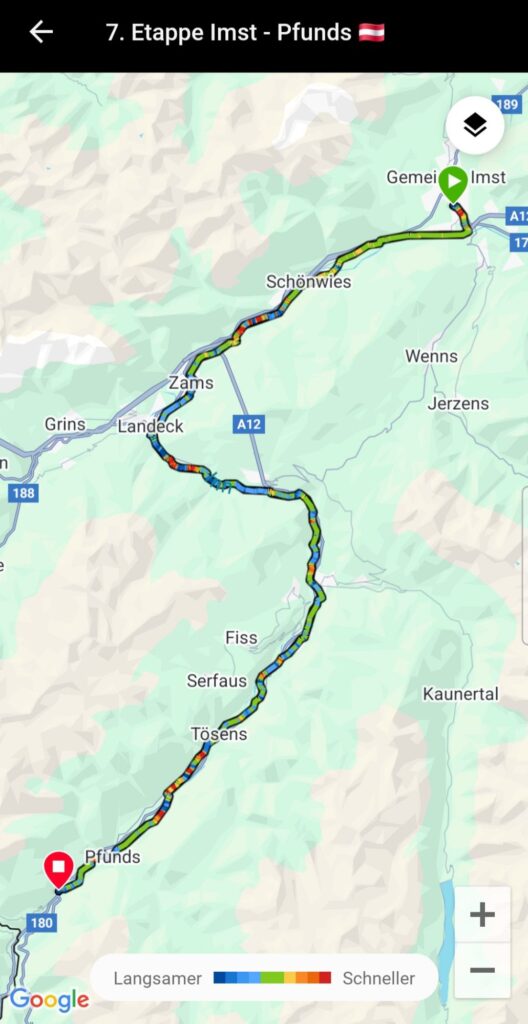 Der „sanfte“ Alpen-X hat begonnen. Es hat während der ganzen Etappe (77,5 km / 750 hm) geregnet. Der Fernpass für Radfahrer war 7,35 km Schotterpiste, was das Fahren mit Gepäck nicht einfacher gemacht hat. Aber wir haben die Etappe geschafft 💪!