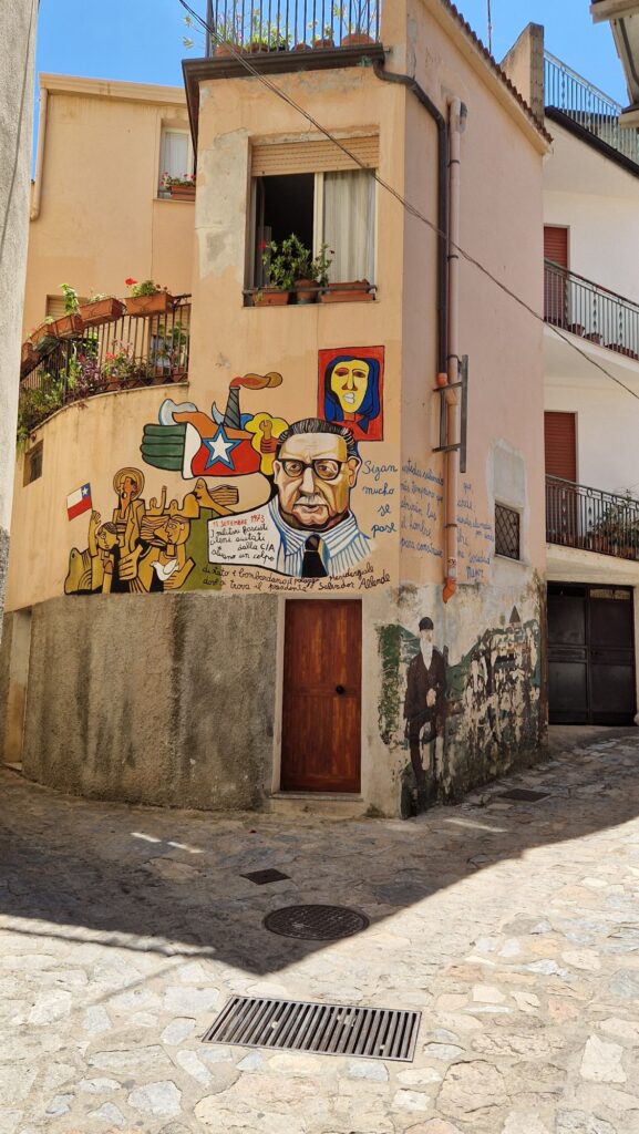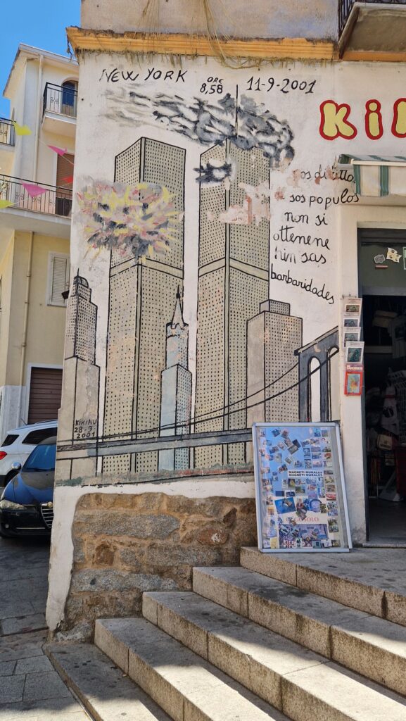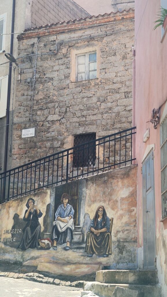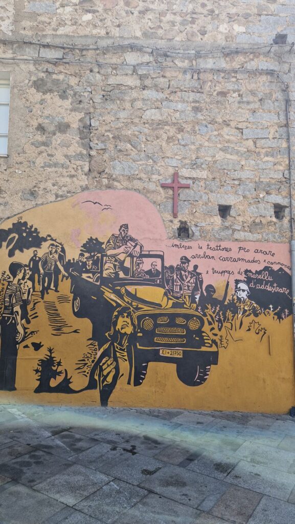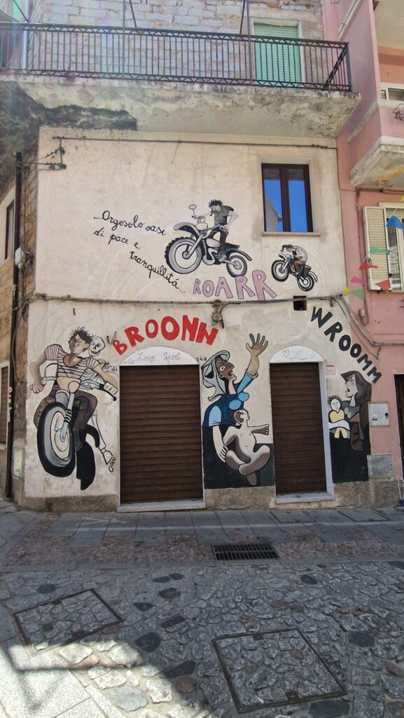 Mit dem kleinen Fiat erkundeten wir die doch sehr bergige Insel.Zuerst ging es in das Bergdorf Orgosolo…Orgosolo ist bekannt für seine „Murales“.Die Wandgemälde nennt man hier Murales… …sie sind seit 1968 an den Fassaden entstanden……und haben häufig einen sozialen..… oder politischen Hintergrund.